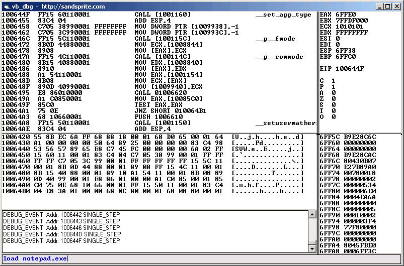 If you Compiled your VB ExE with debug info, you will be able to see your VB Source interspersed with the actual Assembly that is running, with the VC other debug tools this is very powerful way to see what is going on!