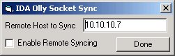 The second feature of the olly plugin is to minimally integrate your olly debugging with your IDA disassembly. I always have to have both open during an analysis, so with this, every time olly hits a breakpoint or single steps, it will remotely sync your IDA disassembly window.